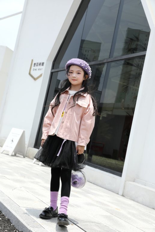 牛仔外套是秋天必备单品,粉色时尚牛仔外套,原创设计溜肩宽松设计。搭配黑色蓬蓬裙简单hold住全场。整体的造型时髦温雅。