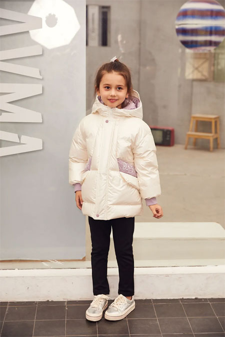 经典H型廓形,简约大气,珠光白涂层面料,防风防水,撞色设计活泼俏皮。
