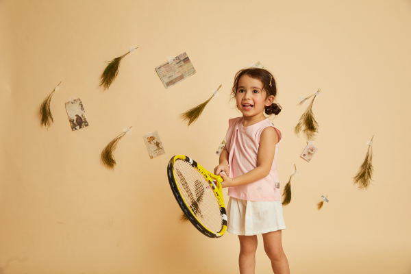 灰色的短裙在设计上点缀了一个菠萝口袋的装饰,小面积的黄色搭配让穿搭更有活力和时尚感,搭配上一件简单亲肤又透气的白色短袖就能够让你的宝贝活力又时尚了。
